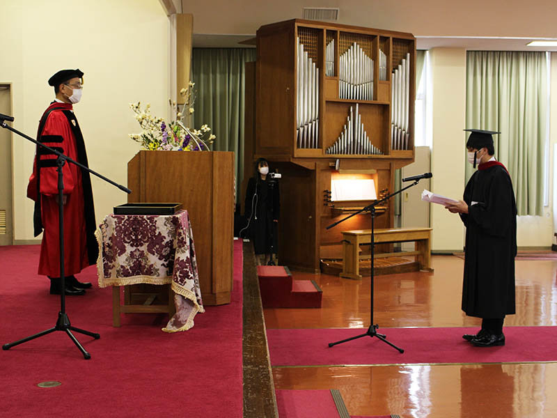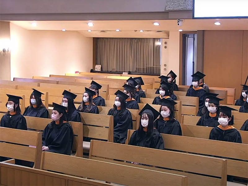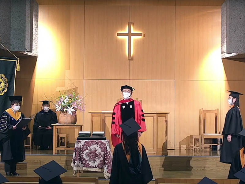 それぞれ卒業生、教職員のみで行われ保護者の皆さまへはインターネット配信されました。いまだ新型コロナウィルス収束は見通せず、先行きの不透明な困難な状況が続きますが、卒業していく学生一人ひとりが、三育学院で学んだことを活かし、医療・教育・教会等で活躍することをお祈りいたします。
